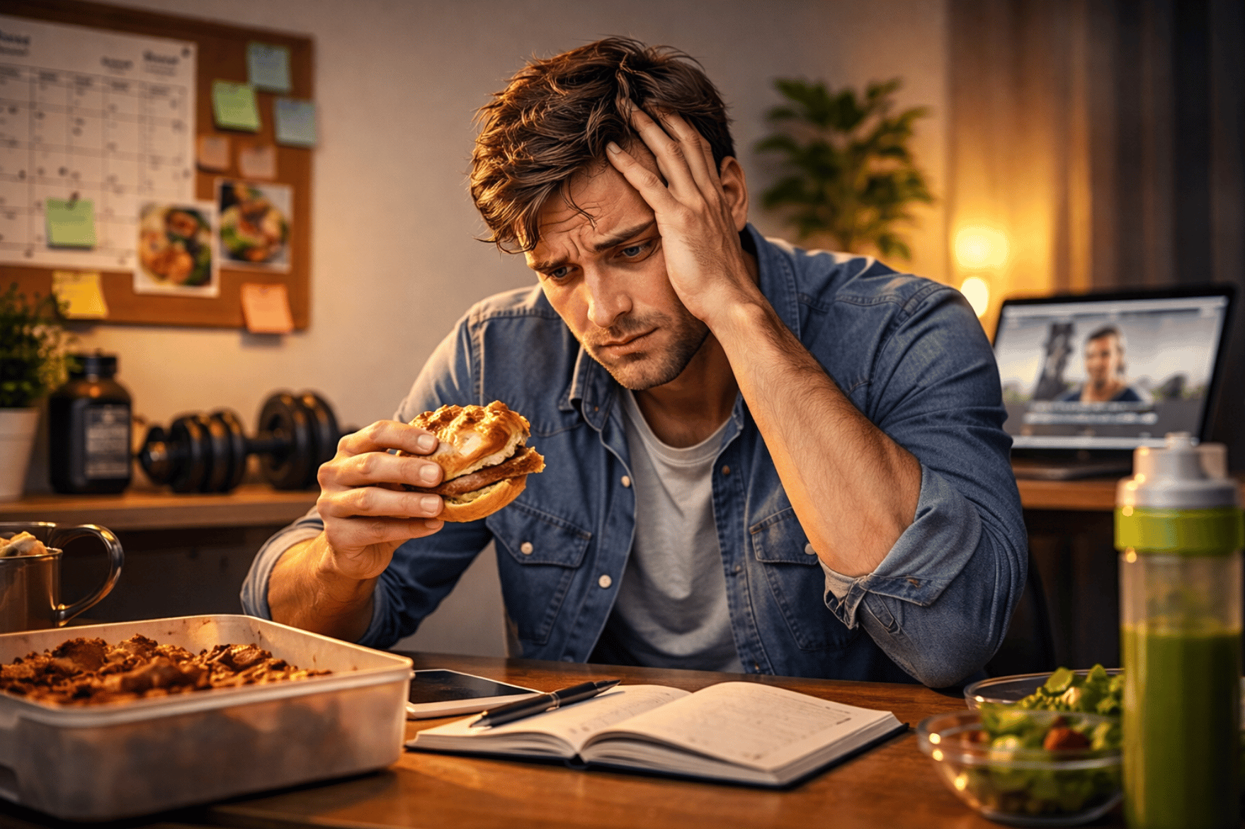 He plans everything down to the smallest detail. Clean meals, strict rules, fixed workout times. And as long as everything goes according to plan, he feels great. But the moment life gets in the way — a stressful day, a missed workout, or a meal that wasn’t “healthy enough” — his mindset shifts completely. One imperfect day suddenly means the whole week is a failure. Instead of adjusting and continuing, he gives up and tells himself he’ll start again next week.