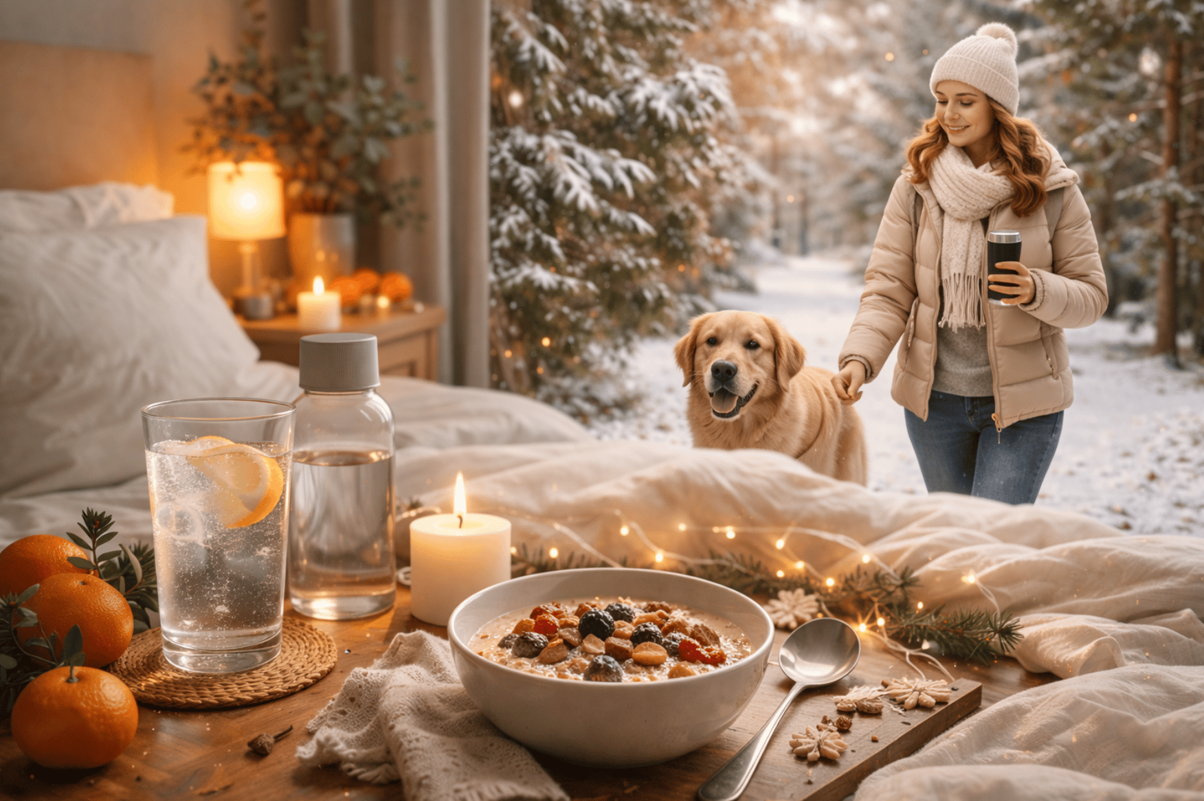 These habits don’t cancel out Christmas meals — but they create balance. When water, movement, and sleep are in place, my body handles richer food much better. I feel more grounded, less bloated, and more in control without restriction.