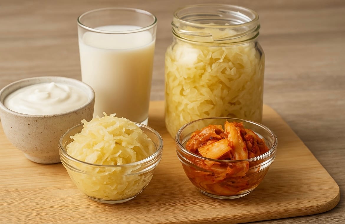Fermented foods such as yogurt, kefir, sauerkraut, and kimchi give your gut a natural supply of helpful bacteria. These good bacteria strengthen your microbiome and make it easier for your body to digest food without discomfort. When the gut has enough healthy bacteria, digestion becomes smoother, nutrients are absorbed better, and bloating can decrease. You don’t need a lot to see benefits. Even small daily amounts — like a few spoonfuls of sauerkraut or a small glass of kefir — can support a healthy and balanced gut.