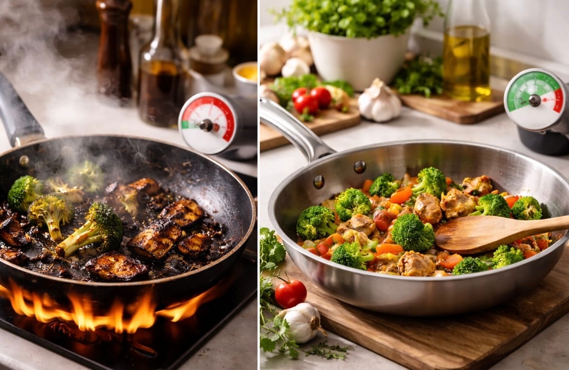 A better approach is to cook more gently. Using medium heat most of the time helps preserve nutrients, keeps fats more stable, and makes food easier to digest. High heat still has its place, but it should be used briefly and intentionally, for example when searing meat at the beginning of cooking. This way, food stays flavorful, nourishing, and much kinder to your body in the long run (Read more).